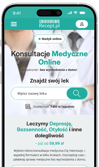 Tak, na recept.pl możesz zamówić pełną konsultację lekarską online – zarówno formularzową, jak i telefoniczną. W jej trakcie medyk może wystawić Ci e‑receptę, e‑skierowanie lub L4 online. Dotyczy to również trudniejszych przypadków, takich jak recepta na leki nasenne czy przeciwdepresyjne i stabilizatory nastroju. Wizyta przebiega w pełni zdalnie, a dokumenty otrzymujesz SMS-em i mailem.
